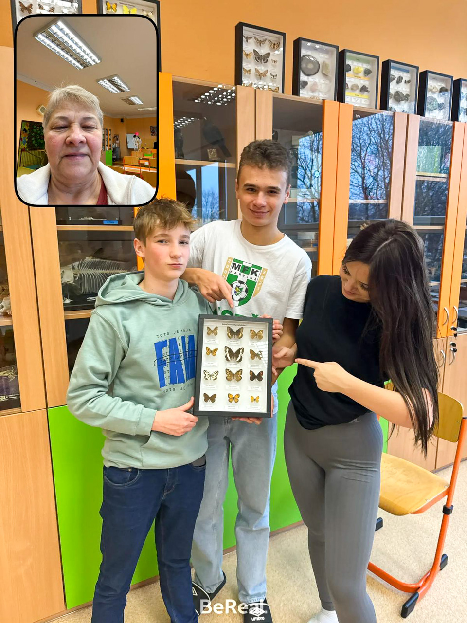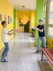Žáci 9. A plnili v rámci předvánoční projektové hodiny v anglickém jazyce několik úkolů, které měli najít, odkódovat a poté vytvořit fotku dle daných pokynů. Pokyny byly např. vyfoť motýla, něco žlutého ve vzduchu, jak děláte legrační obličeje, posilujete, vyfoťte se s vedením školy, s paní učitelkou, s nějakou paní kuchařkou, postav se na něco růžového apod.
