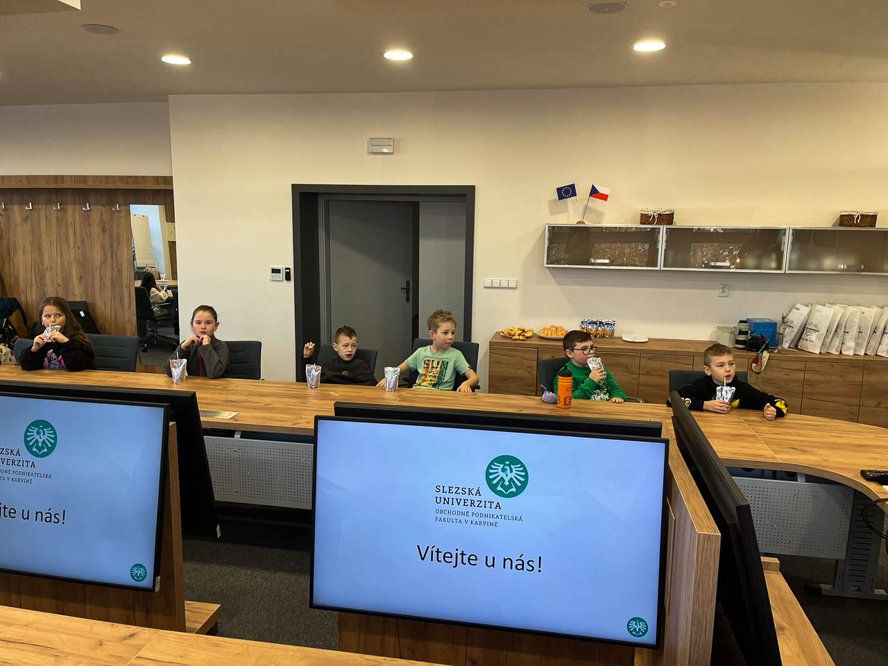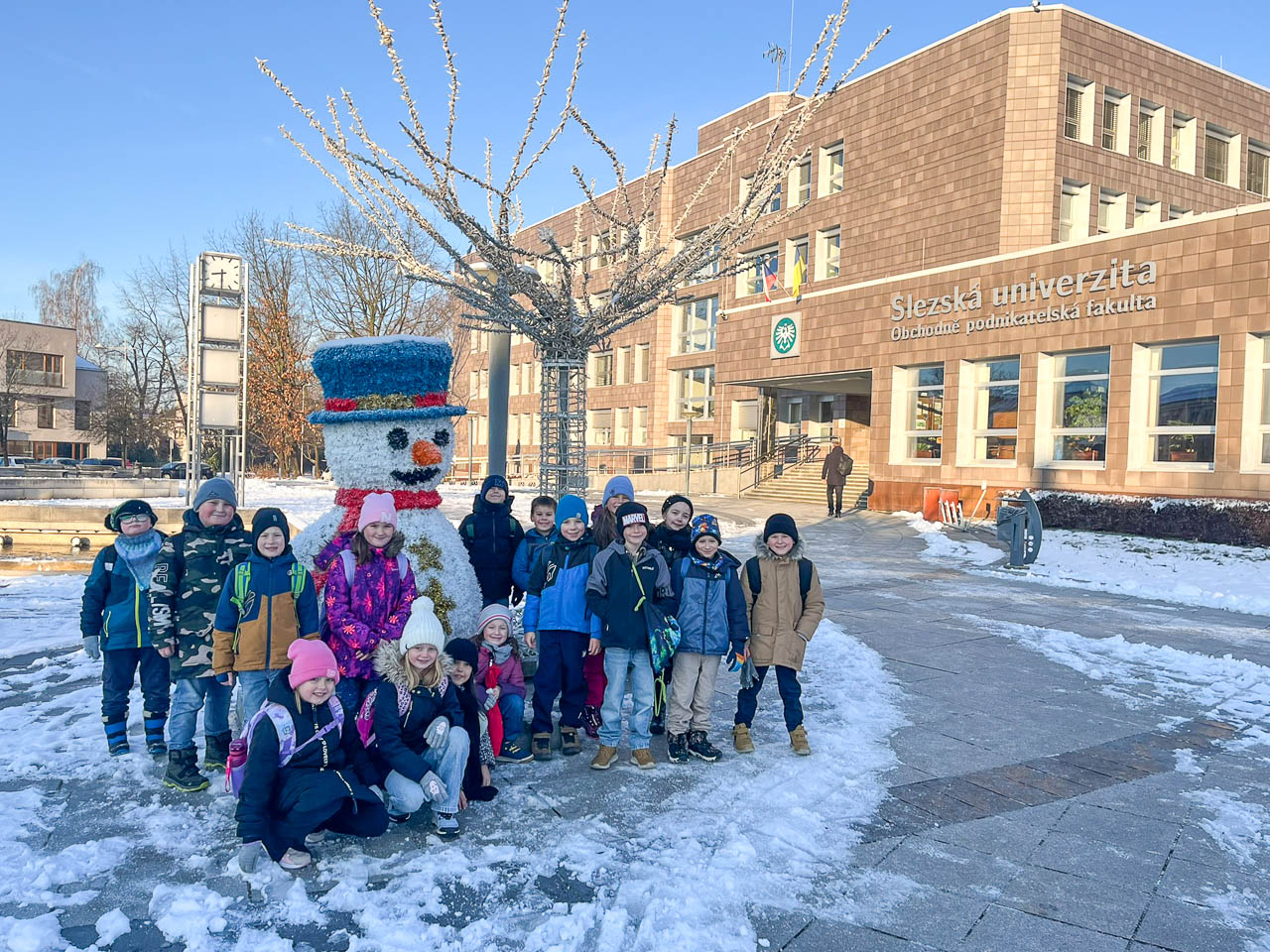 Žáci 2. ročníku vyrazili na zajímavou a zábavnou exkurzi na Slezskou univerzitu v Karviné. Už samotná návštěva vysoké školy byla pro děti velkým zážitkem – mohly nahlédnout do prostředí, kde studují starší studenti, a podívat se do prostor, které běžně nevídají.