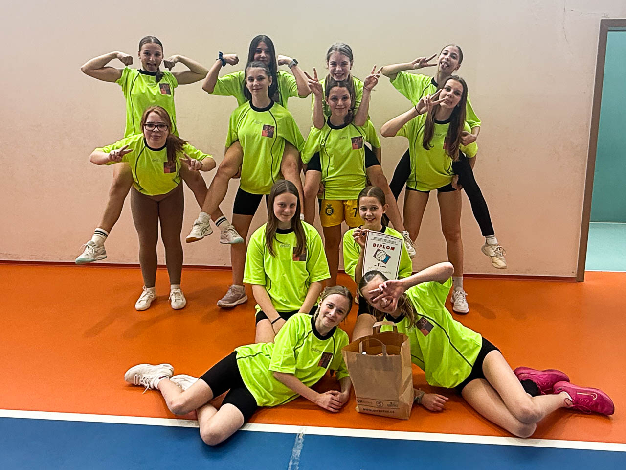 Po dnešním srdnatém a týmovém výkonu si z konkurence osmi karvinských škol odnášíme první místo!!! Holky děkujeme – byl to skvělý zážitek!