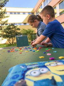 Děti si procvičily zábavnou formou vše, co již umí a aplikovali angličtinu na celkem deseti stanovištích, která se jmenovala SONG, ON THE FARM, ANIMAL DESCRIBTION, SPELLING RACE, ALPHABET FUN, IN THE COUNTRY, HIDDEN WORDS, MEET A FOREIGNER, LET´S RUN and ANIMAL RIDDLES. Procvičili si své jazykové kompetence ve všech čtyřech oblastech – poslech, použití gramatických jevů, čtení a mluvení.