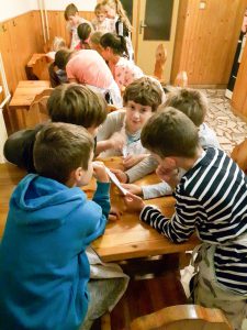 V úterý jsme po snídani vyběhli za chatu nasbírat šišky, které jsme ve středu použili na výrobu krmítek pro ptáčky. Během dopoledne jsme šli na farmu, kde jsme si vyzkoušeli farmářské práce – sbírali jsme větve na košťata, balili jsme sýry, ukládali dřevo, kydali hnůj. Nejvíce nás zajímala zvířata, která jsme si nadšeně i pohladili. Odpoledne jsme si vyzkoušeli biliard, krouhání a šlapání zelí a výrobu domácího sýru. Každý večer máme ochutnávku čaje, který si vaříme z bylinek.