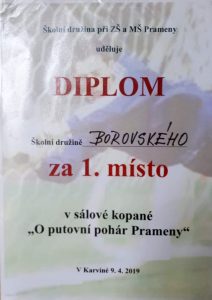 Dne 9. 4. 2019 se naši chlapci 1., 2. a 3. tříd zúčastnili turnaje o pohár ZŠ Prameny. Naši borci to vzali zodpovědně, turnaj si náležitě užili a již počtvrté za sebou ho vyhráli! Všem moc gratulujeme a děkujeme za účast!