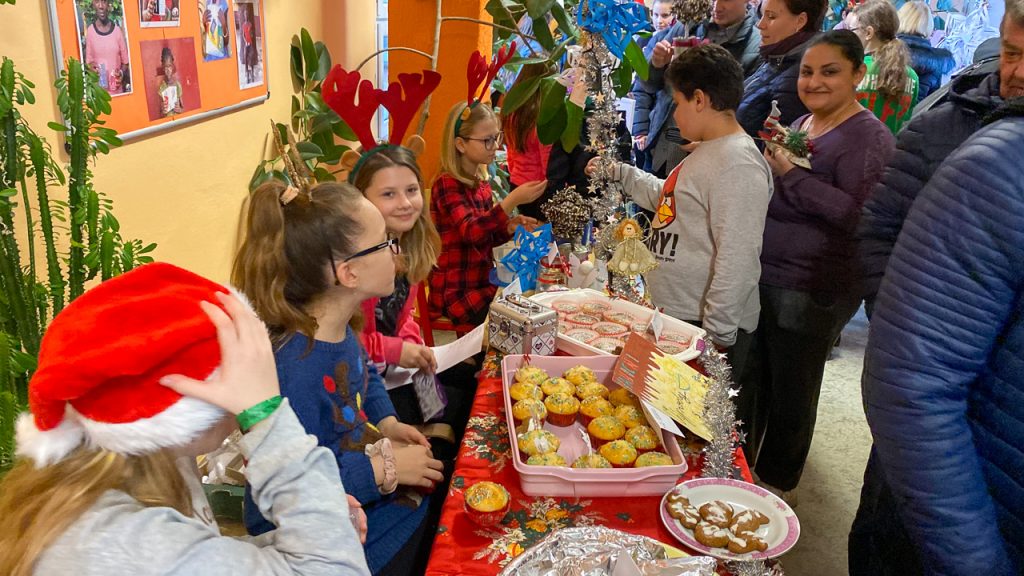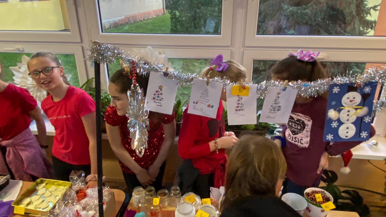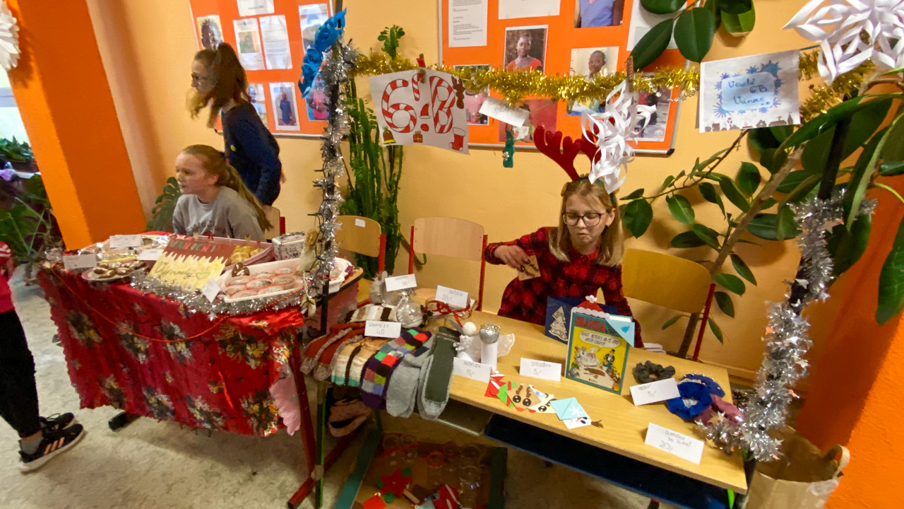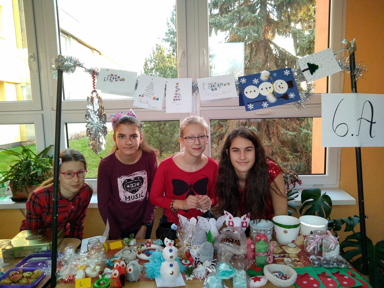 První prosincové úterý proběhl na naší škole již tradiční vánoční jarmark. Jarmark zahájily děti zpěvem koled, který navodil krásnou vánoční atmosféru. Hlavní chodba se proměnila v malé „tržiště“, kde děti ve svých stáncích prodávaly rukodělné výrobky, ve kterých bylo hodně nápadů, dovednosti a lásky. Nabídka byla opravdu pestrá. A aby byla vánoční atmosféra dokonalá, v Kavárničce mohli návštěvníci ochutnat zákusky, cukroví nebo pravý vánoční punč. Děkujeme Všem, kteří k nám zavítali.