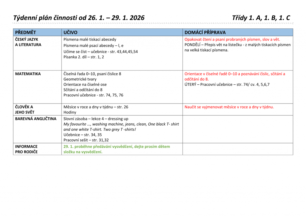 Týdenní plány 1. tříd